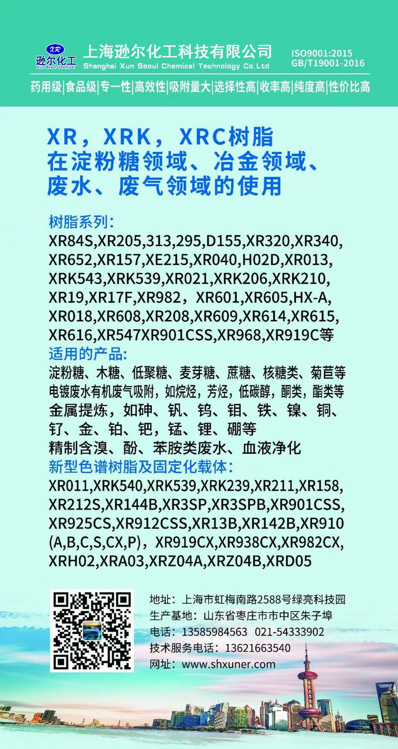 上海遜爾化工科技有限公司是上海市新型的高分子材料研發(fā)、生產、應用相結合的高科技公司。公司具有完善的自主知識產權創(chuàng)新體系,與華東理工大學,江南大學,浙江工業(yè)大學等科研應用平臺合作從事離子交換與吸附樹脂研制、生產和生物醫(yī)藥合成與分離工藝,三廢處理工藝開發(fā)設計工作。